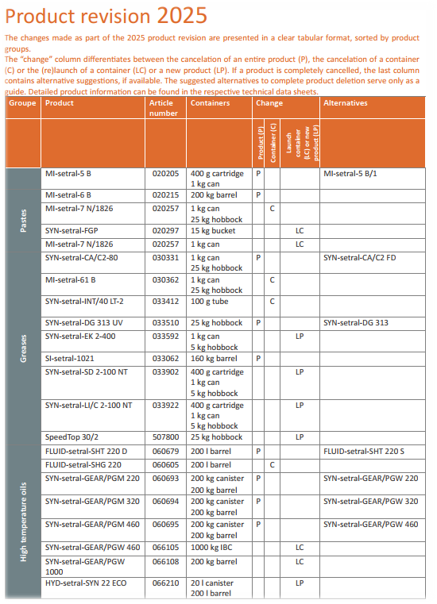 Product change: FLUID-setral-SHT 100 HF/LB